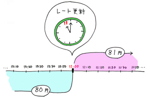 If you order under 1,000,000JPY worth of foreign currency on weekdays, your fixed rate is the one shown on your confirmation email. Your fixed rate expires when the rate is updated, so you have 24 hours to submit your payment via Bank Transfer.