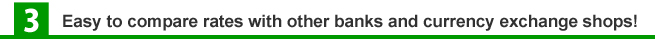 When you want to buy foreign currency, you do not need to have a bank account. Also when you want to sell foreign currency, we can send Japanese Yen to your requested mailing address. Dollar Euro Currency Exchange is the only place where you can exchange foreign currency without any bank accounts!
